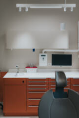Freuen Sie sich auf eine außergewöhnliche Praxis mit einem Eingangs- und Wartebereich der anderen Art, der als Workspace und Ort zum Verweilen für die Zeit vor und nach der Behandlung einlädt. Auch die Behandlungszimmer strahlen durch ihre Gestaltung eine gemütliche Atomsphäre aus.